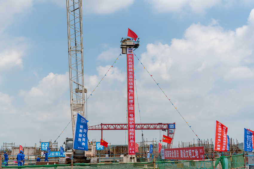 信丰发电1号机组锅炉钢结构顺利开吊!