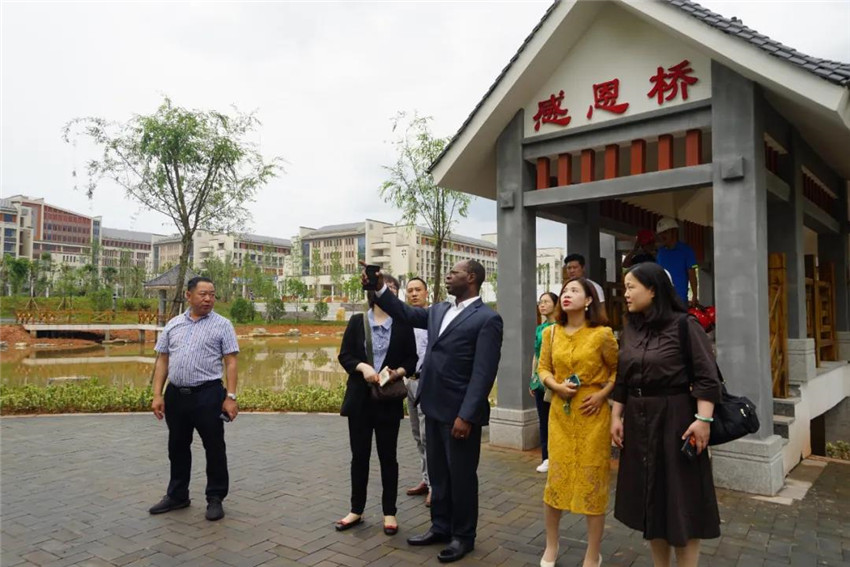 面对花园式、景观式的校园,大使连连称赞,表示“我来参观一个学校,没想到你们简直是建造了一座‘城市’,项目质量非常高,令人深受打动,留下深刻印象。”在项目部会议室召开的座谈中,当得知项目建设团队平均年龄仅28岁,已带领项目获得“江西省建筑结构示范工程”“江西省建筑安全生产标准化示范工地”等荣誉,并正在确保创省优工程的前提下力争“杜鹃花奖”时,大使说:“之前在江西省投资集团中就了解到中鼎做过学校、社会保障房等民生工程,加蓬同样也有类似需求。实地看到这群年轻人建设出这么好的一个项目,我很高兴,可以想象你们今后将会做出更好的工程。作为加蓬大使,在自己的国家也建设这样的项目,是我的一个梦想,在与中鼎这样优秀的企业交流合作的过程中,我相信这个梦想将来肯定会实现。”