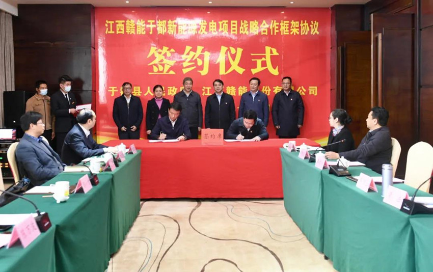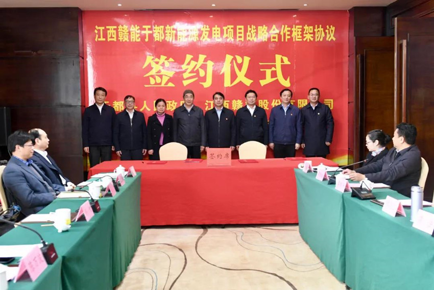 3月9日,于都县人民政府与赣能股份战略合作框架协议签订仪式在于都县举行。集团党委书记、董事长揭小健,副总经理张骅,于都县委书记陈阳山出席并见证签约。于都县委副书记、代县长黄法与赣能股份公司代表签署协议,仪式由于都县委副书记、组织部长李赣兴主持,赣能股份主要负责人参加签约仪式。