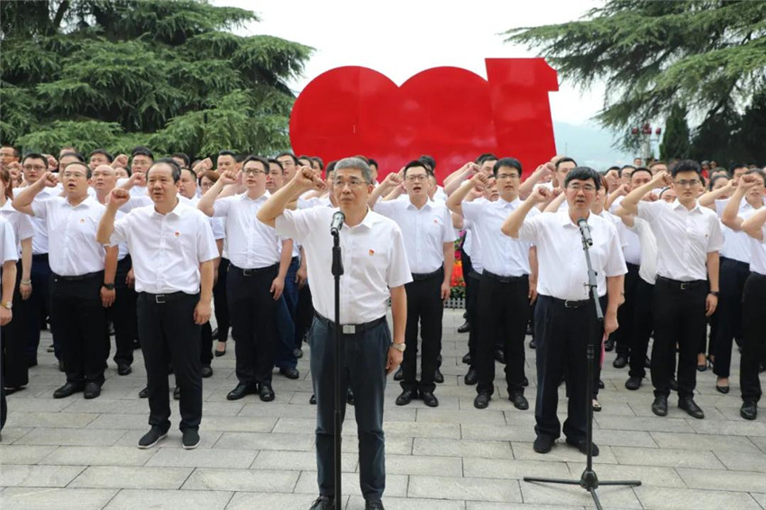 迎百年华诞,为信仰立誓。6月29日上午,来自江投集团总部及各所属企业的160多名新党员在安源路矿工人纪念馆外广场整齐列队,面向鲜红的党旗正容肃立、庄严宣誓,以铮铮誓言表达对党的无限热爱、无限忠诚。